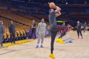 将缺席湖火G1!杜兰特赛前参加热身 秀招牌跳投&膝伤似无大碍