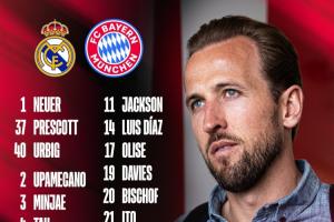拜仁公布战皇马首回合名单:凯恩回归领衔,奥利塞、穆西亚拉在列